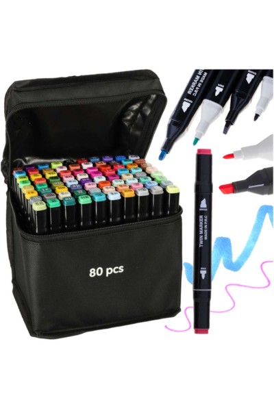 Markery dwustronne alkoholowe 80 sztuk + Etui
